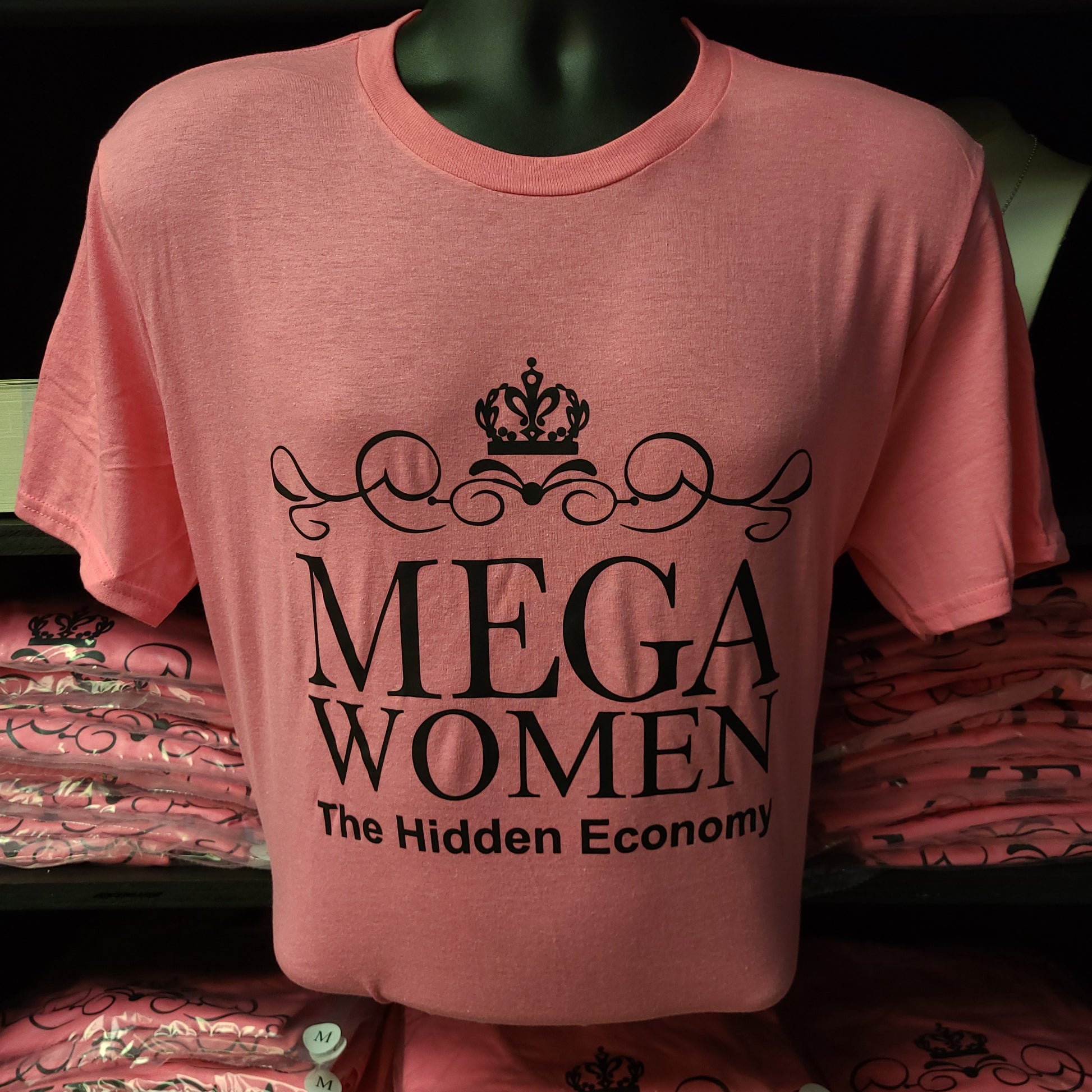 Look no further! Our Mega Women T-Shirts will make a statement while looking stylish. You're helping to empower women in their hidden economy. This is a popular quote from the Mega Women Movement. #megamindset