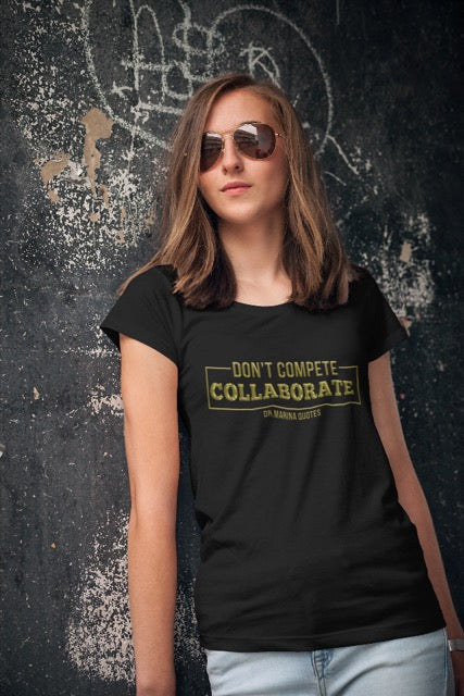 Look no further! Our Don't Compete Collaborate T-Shirts will make a statement while looking stylish. You're helping to empower women in their hidden economy. This is a popular quote from the Mega Women Movement. #megamindset